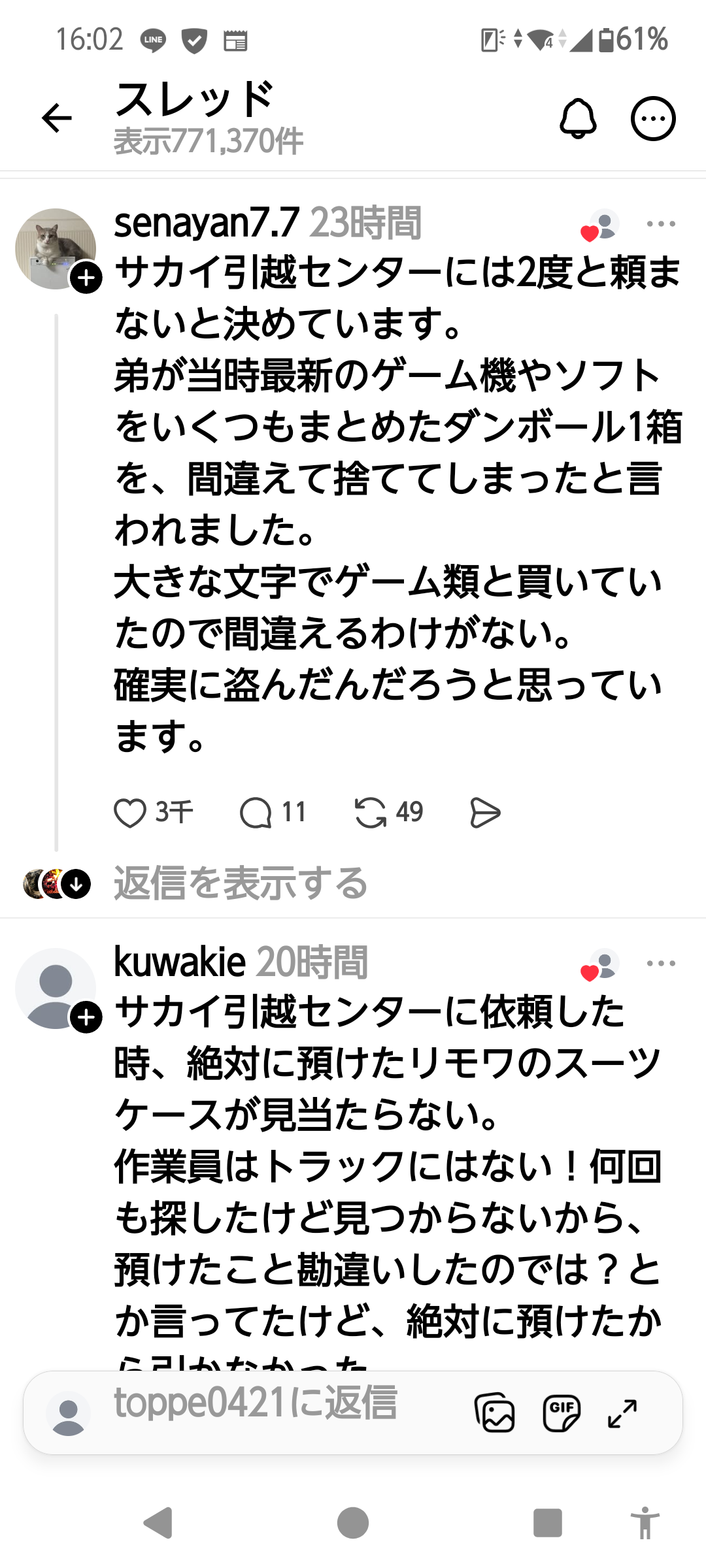・段ボールサービスとか〇〇サービスと言われましたが、請求書にはしっかり記載されていてサービスで無かった。