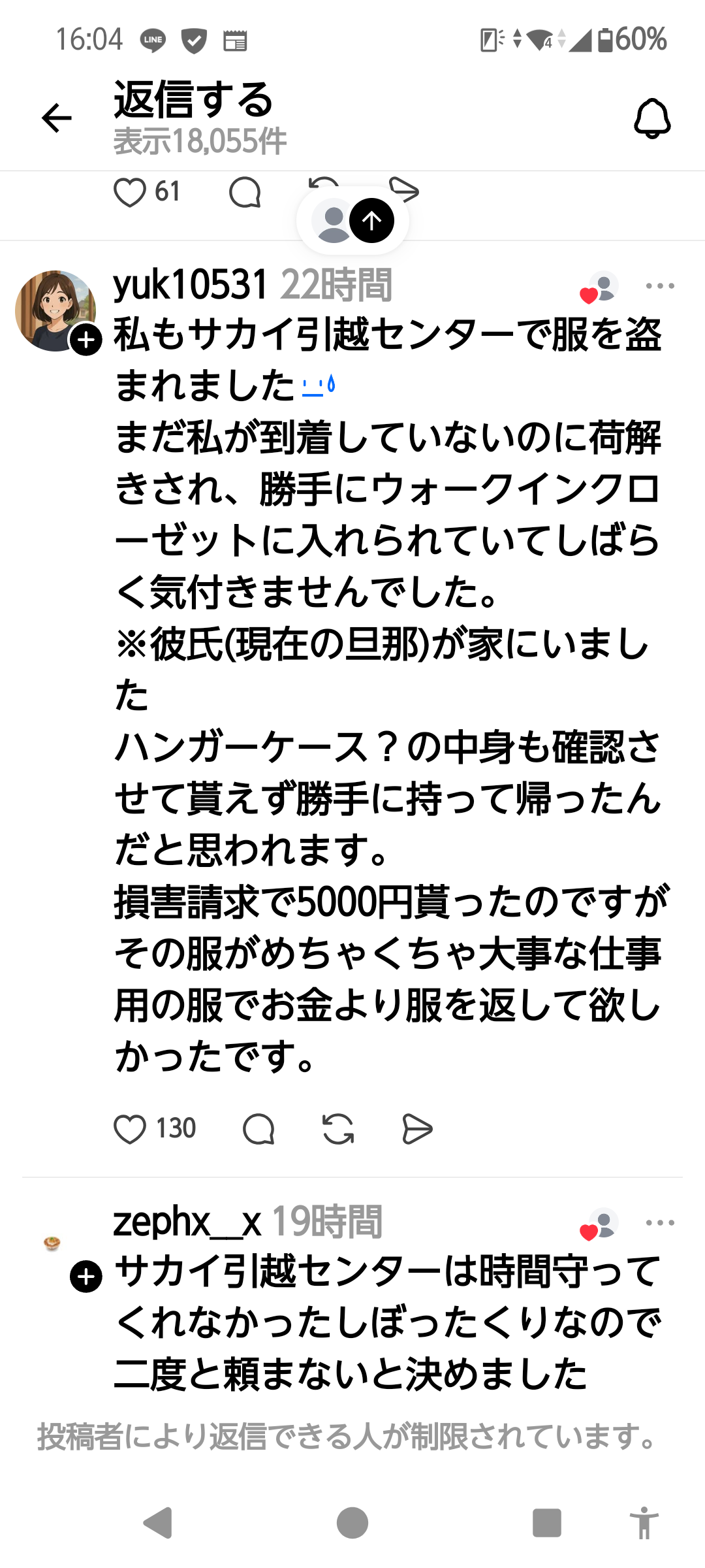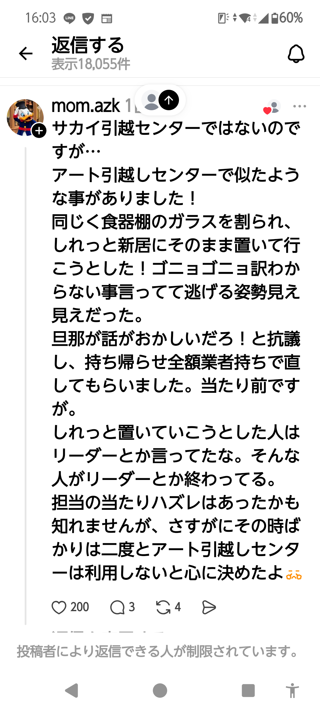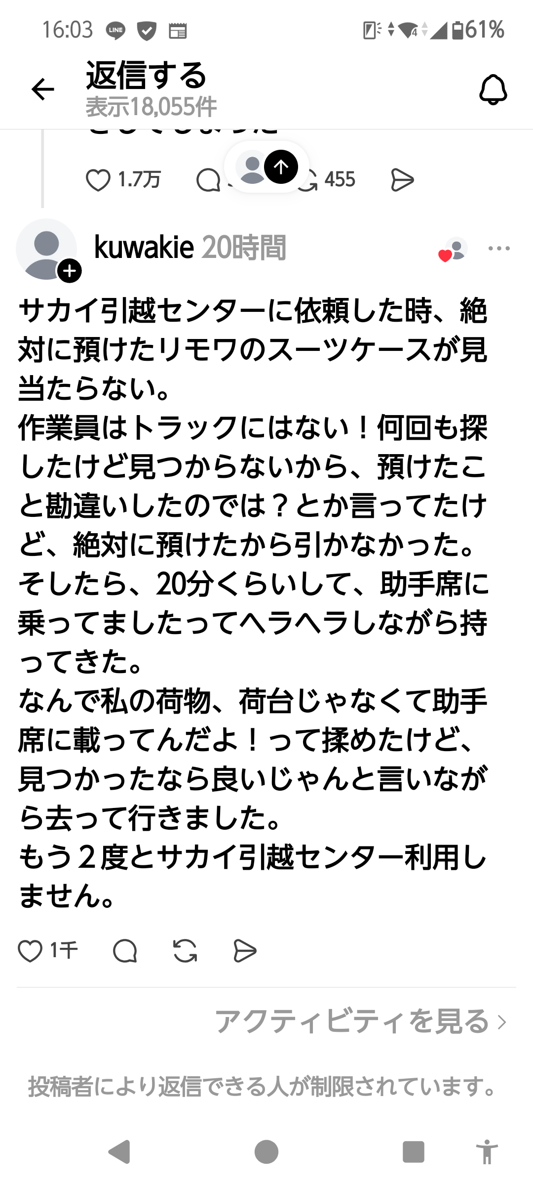 とのことで待っても連絡ないので会社に電話したらそんな報告受けてないと。その作業員は辞めてもういないから確認取れないと。